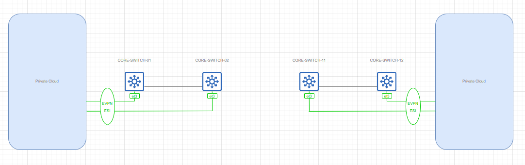 The same principle applies to the Core – Cloud trunks represented by EVPN ESI
