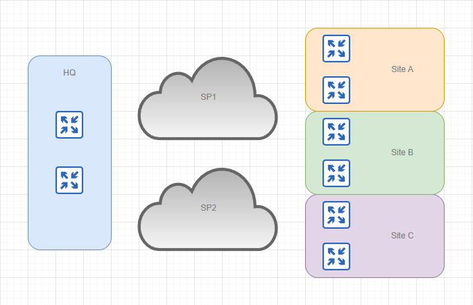 And while being perfectly normal for some of the use cases, in some others you might want to start thinking of adding more devices, circuits and even introducing different service providers to increase redundancy of the network. Say something like this